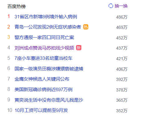 1.31省區(qū)市新增8例境外輸入病例 獵頭熱點熱度486萬